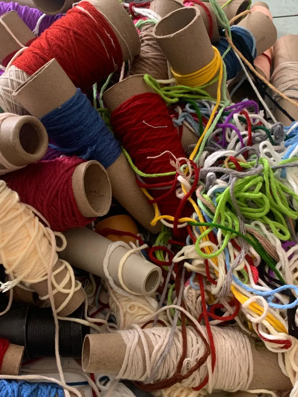 As a tufting studio, we take this concern seriously. We believe that crafting and sustainability should go hand in hand. It took us some time to research, experiment, and figure out what we could do with these leftovers. At one point, we even had 200 kg of leftover yarn sitting in bags because we hadn’t found the right solution just yet!
